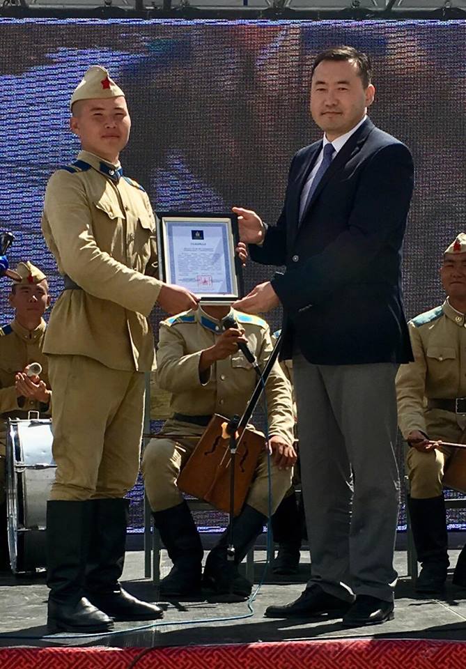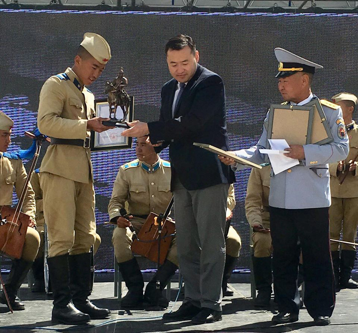 Хамт олноо манлайлсан офицер, ахлагч, байлдагч нарт Монгол Улсын Ерөнхийлөгчийн тамгын газрын нэрийн өмнөөс Ерөнхийлөгчийн Байгаль орчин, хот хөдөөгийн хөгжлийн бодлого, агаарын бохирдлын асуудал хариуцсан зөвлөх Д.Пүрэвдаваа талархал илэрхийлж дурсгалын зүйл гардуулав.