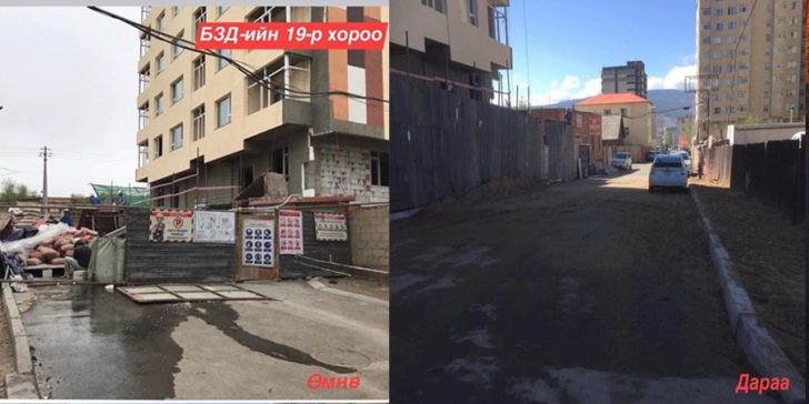 БЗД-ийн 19-р хорооны Хамтын хүч констракшн ХХК-ний 60 айлын орон сууцны гадна авто замыг хаасан зөрчилтэй хашааг албадан буулгаж авто замын хөдөлгөөнийг нээж хэвийн үйл ажиллагаанд орууллаа.