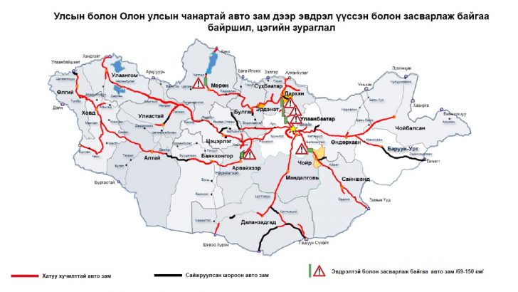 нутгаас үер борооноос үүдэн эвдэрсэн замын байршлын мэдээллийг зургаар