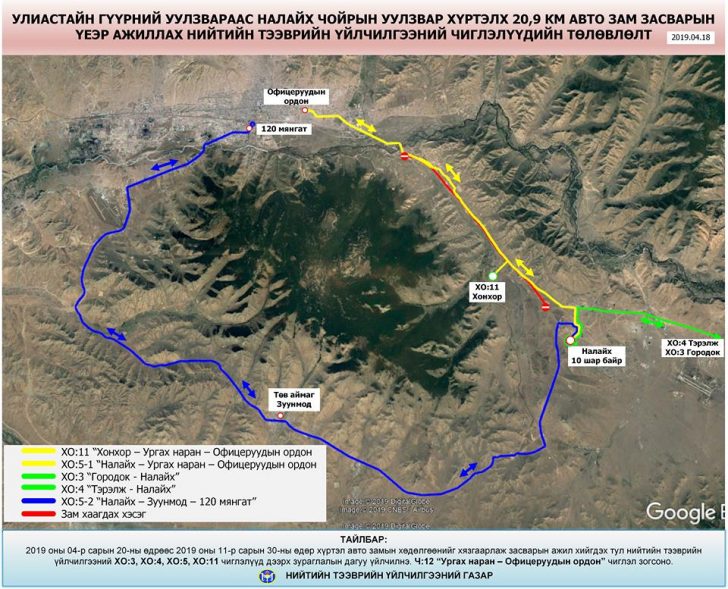 Налайхын авто зам засварын үеэр ажиллах Нийтийн Тээврийн үйлчилгээний төлөвлөлт