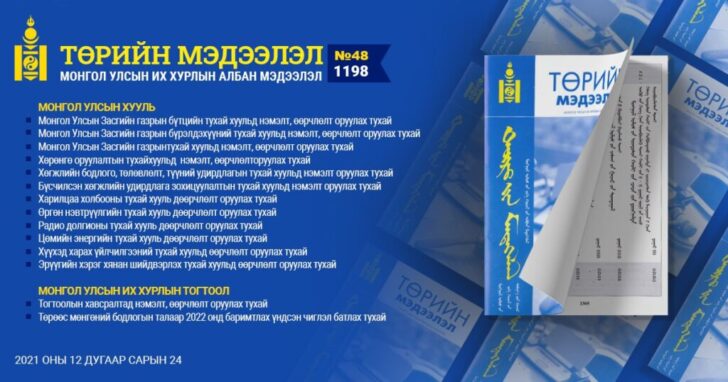 ”Төрийн мэдээлэл” эмхэтгэлийн 2021 оны 48 дугаарын тойм