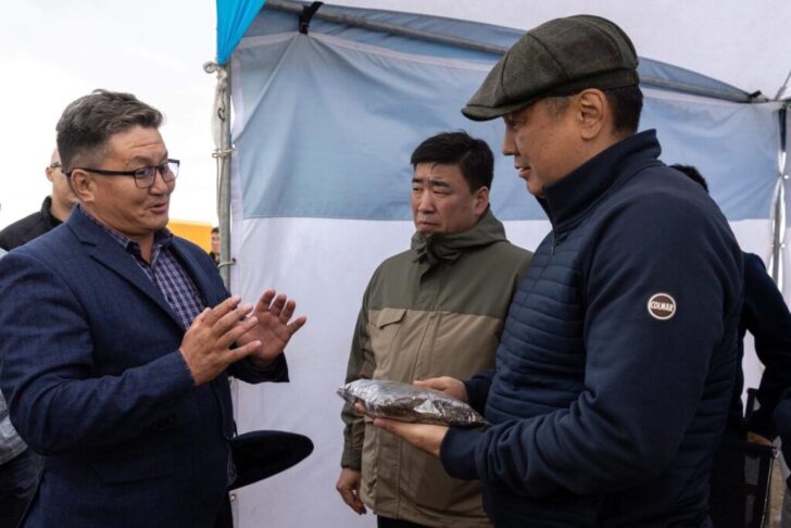 Монгол Улсын Ерөнхийлөгч Ухнаагийн Хүрэлсүх Хэнтий аймагт ажиллах үеэрээ Хэрлэн сумын нутагт хэрэгжих “Хүнсний ногооны үйлдвэрлэл ба усалгаатай газар тариалан” төслийн явцтай танилцлаа.