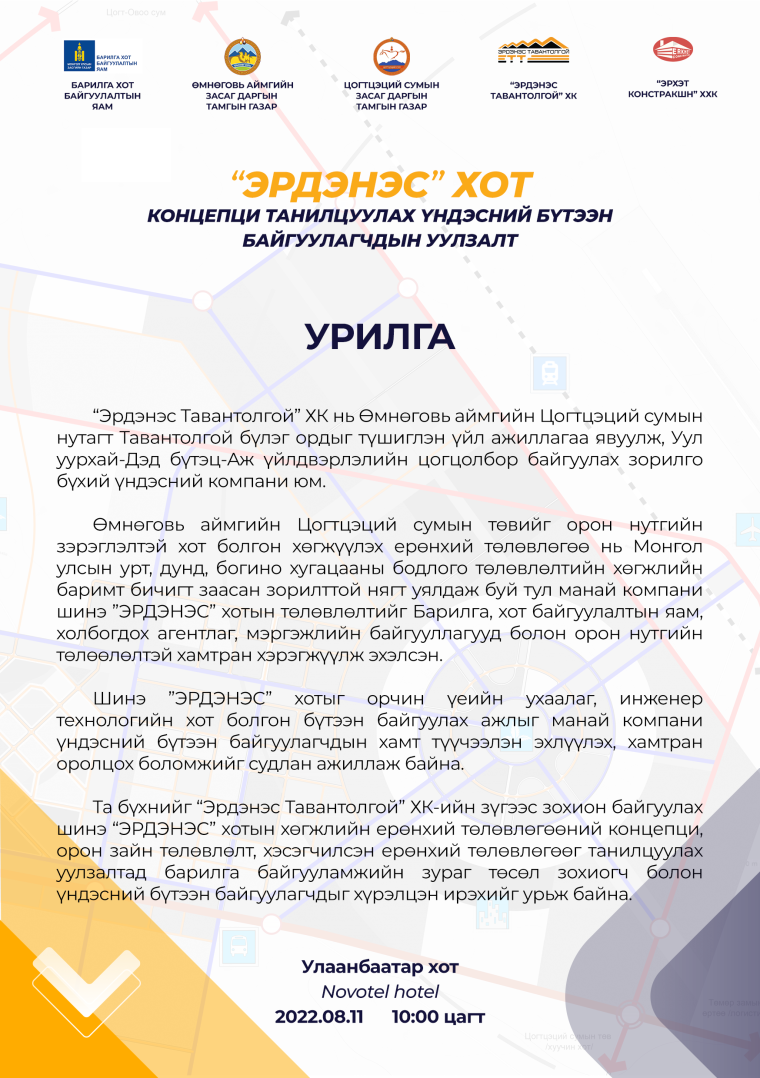 “Эрдэнэсийн хот”-ын төслийн танилцуулах уулзалтад урьж байна