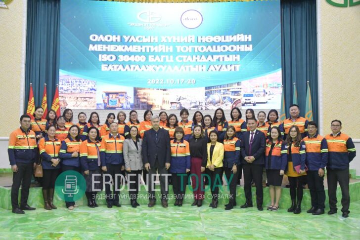 Франц улсын АФНОР группийн олон улсын аудиторууд “Эрдэнэт үйлдвэр” ТӨҮГ-т хэрэгжиж буй “Хүний нөөцийн менежментийн тогтолцоо ISO 30400” багц стандартын хэрэгжилтэд сэтгэл хангалуун байгаагаа илэрхийлэн, шалгалтаар үл тохирол илрээгүйг онцлон, дүгнэлтийг танилцууллаа. Олон улсын Тэргүүлэх аудитор А.Оленков Эрдэнэт үйлдвэрээс 32 давуу тал олж харснаа олзуурхаж, сүүлийн гурван жилийн хугацаанд “Хүний нөөцийн менежментийн тогтолцоо ISO 30400” олон улсын багц стандартыг хэрэгжүүлэхийн төлөө уурхайчин хамт олны гүйцэтгэсэн ажлыг дундаж түвшнээс хэдийн давсан хэмээн үнэллээ. Тодруулбал, Эрдэнэт үйлдвэр хүний нөөцийн стандартын баталгаажуулалтын анхны шалгалтаа 70 оноотой амжилттай хамгаалав.
