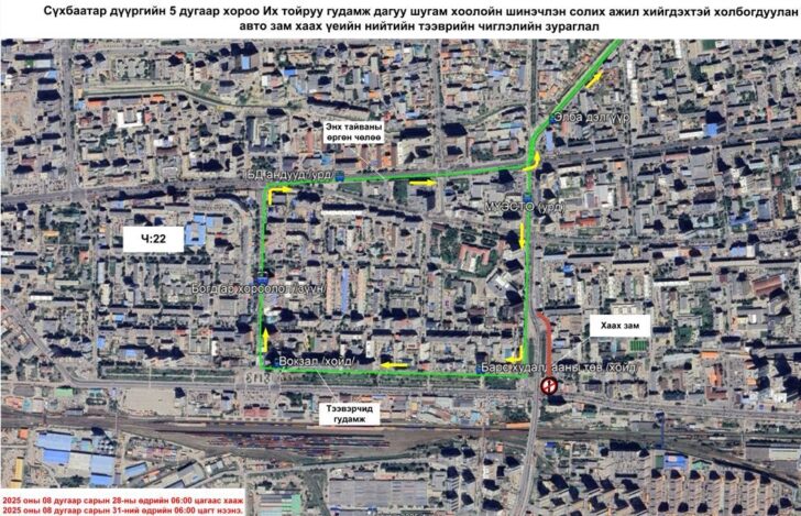 Нийтийн тээврийн Ч:21Б, Ч:22 чиглэлд түр өөрчлөлт хийнэ