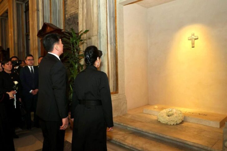 Ерөнхийлөгч У.Хүрэлсүх айлчлалынхаа хүрээнд Ром хотын Гэгээн Мариагийн Их сүмд Пап Францис агсны дурсгалыг хүндэтгэн бунханд нь цэцэг өргөлөө.