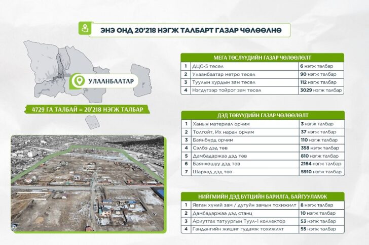 Энэ онд 4729 га талбайд 20218 нэгж талбарт газар чөлөөлнө