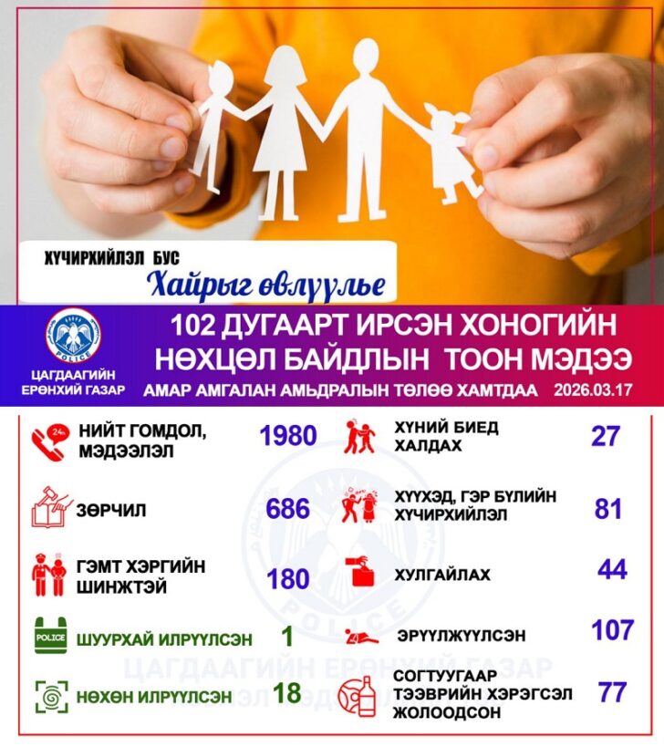 Ганц хоногт гэр бүлийн хүчирхийллийн 81 дуудлага иржээ