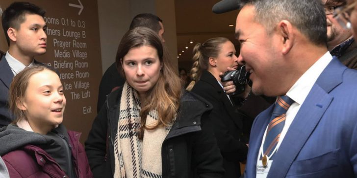 Швейцарын Холбооны Улсын Давос хотноо Дэлхийн эдийн засгийн чуулганд оролцож байгаа Монгол Улсын Ерөнхийлөгч Х.Баттулга өнөөдөр уур амьсгалын өөрчлөлтийн эсрэг тэмцэгч Грета Тунбергтэй уулзаж, түүнийг Монгол Улсад болох олон улсын залуучуудын ногоон наадамд хүрэлцэн ирэхийг урилаа.